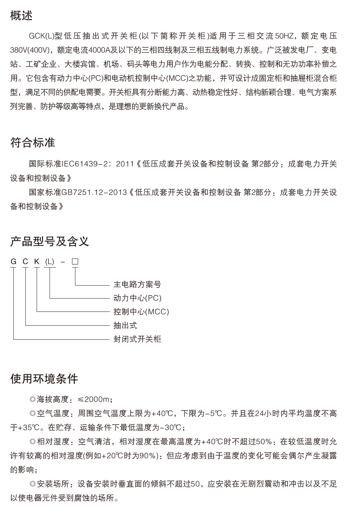 GCK(L)低壓抽出式開關柜